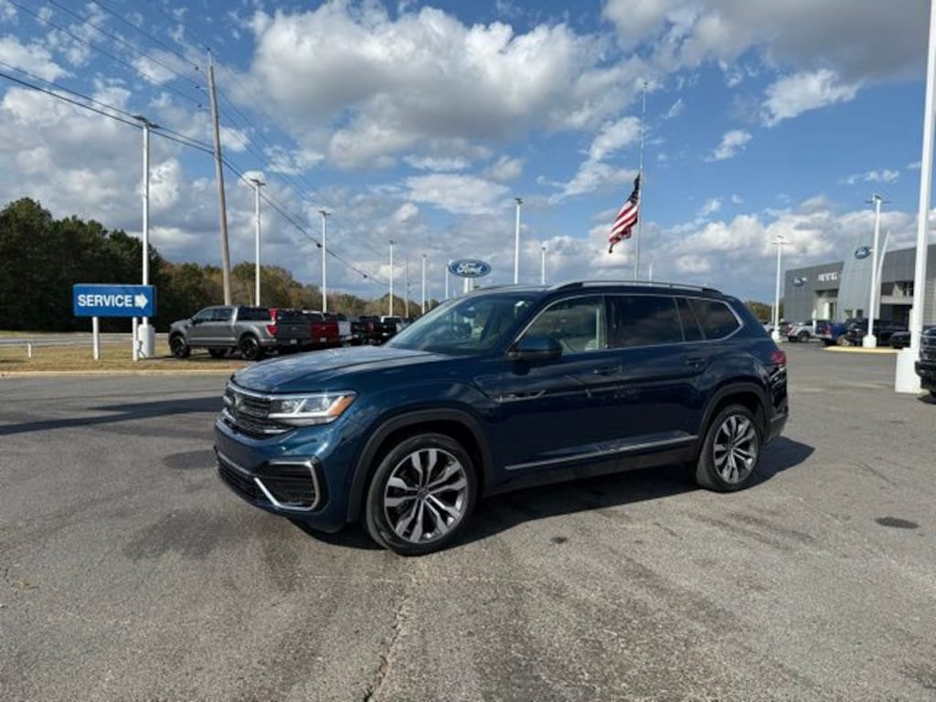 16/22 City/Highway MPG 2021 Volkswagen Atlas 3.6L V6 SEL Premium R-Line 4D Sport Utility Pacific Blue Metallic 2021 Volkswagen Atlas 3.6L V6 SEL Premium R-Line AWD 8-Speed Automatic with Tiptronic 3.6L VR6